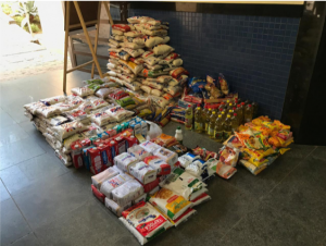 In de zaal zijn alle 380 stoelen bezet en er staan nog wat mensen achterin. Mensen kunnen hun naam en casus die ze in willen brengen op een papier schrijven en in een doos doen. Veel mensen komen naar voren om hun papier in de doos te doen. Buiten de zaal groeit de stapel voedsel; deze ochtend is open voor de community van Goiânia en tegen betaling van 2 kilo houdbaar voedsel kunnen ze met